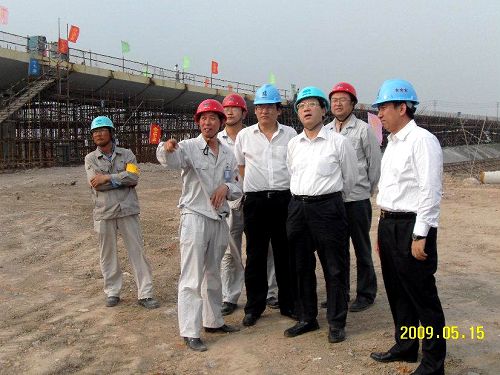 515下午,中冶集团暨中冶股份公司董事长刘本仁在南京中冶和熙置业有限责任公司总经理孙建伟、副总经理刘建华等领导的陪同下,不旅途劳累,兴致勃勃地来到十七冶南京滨江大道工地视察指导工作。