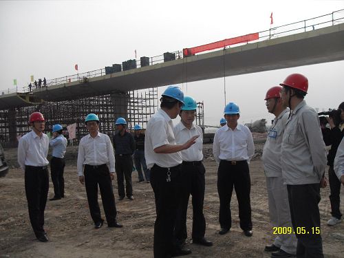 刘本仁董事长认真视察了滨江大道1.1标淮河路NE匝道桥,详细询问了钢箱梁制作、安装等施工工艺问题,对钢箱梁桥的施工质量、进度和安全都给予了充分肯定。刘本仁董事长对十七冶项目部全体参战员工给予亲切慰问,并希望十七冶把南京滨江大道市政工程建成一流的精品工程。