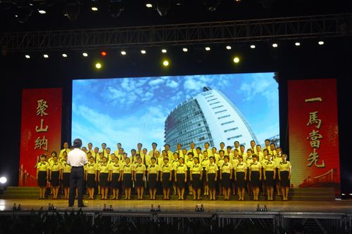 10月13日晚上,华灯初上,市政广场流光溢彩、欢声笑语、萤光棒挥舞、小红旗摇曳。“人文博望”杯马鞍山市第27届“江南之花”群众文化节汇报演出在广场露天舞台隆重举行,由全市各单位精心选送的18个节目精彩纷呈,中国十七冶集团新型建筑制品与物流公司、风力与太阳能发电工程技术公司共同演唱的大合唱《祖国颂》作为压轴节目取得圆满成功,并获得市委书记、市长和有关领导的充分肯定。 为了确保演出成功,两公司的领导十分重视,领导班子成员齐上阵,队员们更是精神振奋,全力以赴投入到排练中。他们利用业余时间,甚至放弃了双休日,特别是在演出前一天的晚上,主力队员排练到晚上11点多钟。功夫不负有心人,演唱水平有了进一步提高。 10月13日晚上,在市政广场露天舞台上,70余名队员服装统一、队形整齐,饱含真情、激情洋溢,以一曲《祖国颂》向在场观众展示了一个充满活力、激情、和谐和追求创新的十七冶。