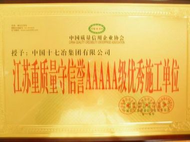 日前,中国质量信用企业协会、中国品牌信用评价中心、中质信江苏质量信用监督委员会联合授予中国十七冶集团公司 “江苏重质量守信誉