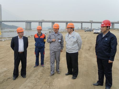 公司副总经理唐灶荣向王永光副总裁一行介绍了十七冶海堤项目工程进展情况。珠海分公司经理王建华详细汇报了海堤项目的形象进度和安全文明施工管理情况。王永光副总裁在了解海堤项目的安全、质量、规模、工期、回购风险管理等方面情况后,对施工现场进行了实地考察,对海堤项目安全管理工作、施工质量管控和项目整体推进予以肯定,就加强项目水上作业安全、工程质量等方面工作还提出了具体的要求。