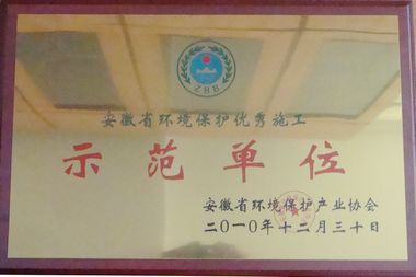 日前,安徽省环境保护产业协会授予十七冶集团公司“安徽省环境保护优秀施工示范单位”称号,并颁发了荣誉证书和奖牌。