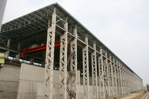 东北特钢集团大连基地环保搬迁项目工程,位于大连市金州区登沙河临港工业园区。我公司承建了其中的原料场和烧结两个标段。原料场项目属封闭式,其建筑面积达28341㎡,长423m,宽67m,檐高约29m,在东北地区属规模最大,全国超此规模的也是凤毛麟角。烧结项目共有构筑物50多个,装备有一台烧结机,其利用系数1.0t/(m2.h),年产高碱度冷烧结矿143.5万吨,烧结机最大利用系数1.6t/(m2.h),年产167万吨高碱度烧结矿。