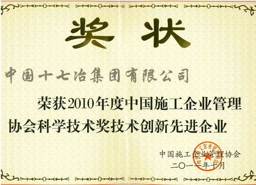 日前,中国十七冶集团有限公司获得2010年度中国施工企业管理协会科学技术奖技术创新先进企业,并有3项技术成果获奖。