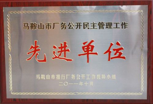 11月3日,在全市深化创新厂务公开民主管理工作经验交流暨先进单位表彰大会上,中国十七冶集团有限公司被马鞍山市推行厂务公开领导小组授予“全市厂务公开民主管理先进单位”称号,并受到了表彰。