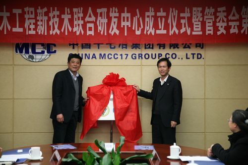 东南大学科技处常务副处长黄培林和中国十七冶集团总工程师尹万云为“十七冶—东大可持续土木工程新技术联合研发中心”揭牌,并分别致辞。