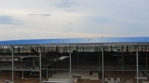 在全体建设者的齐心努力下,厂房屋面封顶提前一天完工,兑现了