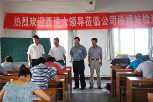 6月15日至18日,西安建筑科技大学继续教育学院杨凯书记一行莅临中国十七冶集团西安建筑科技大学函授站检查教学及新生统考工作。 西安建筑科技大学继续教育学院杨凯书记、王春社主任在公司人力资源部副部长杨昌贵的陪同下,对函授站2012级专科班的考试进行了现场检查,认真听取了函授站的工作汇报,对函授站所做的工作及教学管理模式给予了充分肯定,并对今后的工作提出了指导意见。