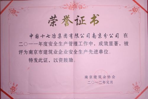 近日,在南京建筑业协会2011年度南京建筑企业安全生产先进评选大会上,中国十七冶集团南京分公司被授予“南京市建筑企业安全生产先进单位”称号。南京分公司副经理朱广剑等两同志被授予“南京市建筑企业安全生产先进工作者”称号,受到大会表彰。