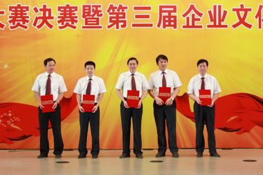 公司领导王建国、彭毅忠、唐灶荣、尹万云分别为大合唱、书画作品展、乒乓球男团和最佳歌手颁奖。