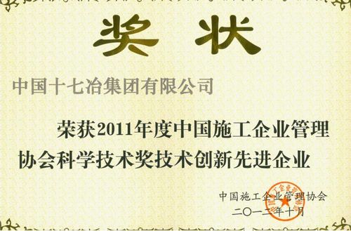 近日,从中国施工企业管理协会2012年科技工作大会暨颁奖会上获悉,中国十七冶集团荣获“2011年度中国施工企业管理协会科学技术奖技术创新先进企业”称号等5项科学技术奖。