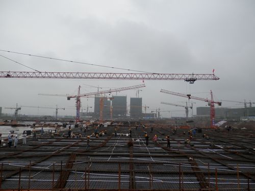 目前,项目部提出了“抢白天,战黑夜,争分夺秒一个月”的口号,不断加大资源配置力度,现场劳动力已增加到2000人,人员和设备两班作业,每天制作安装钢筋600吨以上,浇筑混凝土超过