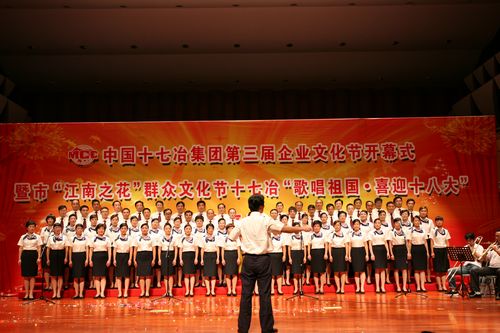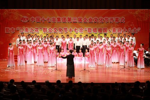 在马鞍山市举办第27届“江南之花”群众文化节期间,中国十七冶集团借举办第三届企业文化节契机,举办了马鞍山市第27届“江南之花”群众文化节17场专场演出中的首场演出——十七冶“歌唱祖国•喜迎十八大”文艺汇演。公司10支合唱队700多名员工的精彩演出,获得了市委、市政府和有关部门的高度称赞,社会反响强烈,从而获得了市委宣传部和市文化委的表彰。