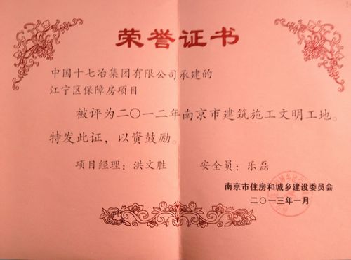 日前,由十七冶南京分公司承建的南京江宁保障房项目获得南京市住房和城乡建设委员会授予“2012年南京市建筑施工文明工地”称号。