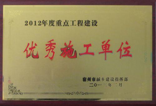 3月5日,十七冶城建工程技术公司宿马项目部荣获2012年度安徽省宿州市重点工程建设“优秀施工单位”荣誉称号。