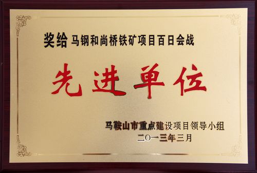 近日,十七冶工程科技公司马钢和尚桥铁矿项目部获得由马鞍山市重点建设项目领导小组授予的“百日会战先进单位”称号,这是参与该项目建设的十多个单位中,唯一获得表彰的单位。