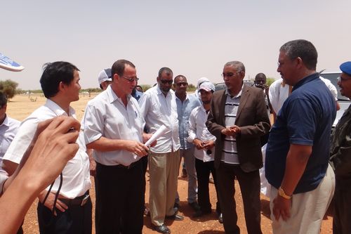 艾哈迈德·哈买得部长一行实地察看了路基、桥涵构筑物施工及破碎站生产、沥青搅拌站设备安装等施工现场情况,并听取了项目经理陈道贵对两个标段工程施工组织、质量、安全环保体系及工程建设等方面情况汇报。