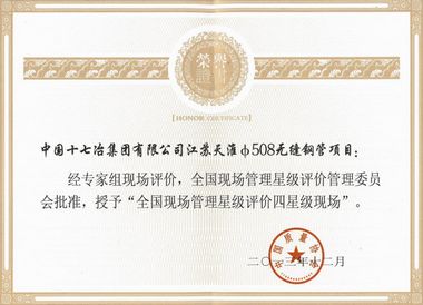 日前,从中国质量协会获悉,中国十七冶集团蚌埠金融中心和天淮无缝钢管两项目荣获2013年度“全国现场管理星级评价四星级现场”荣誉称号。