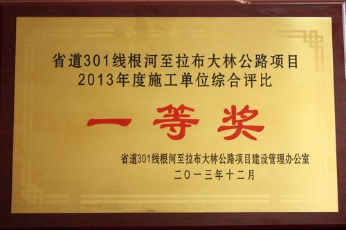 日前,中国十七冶集团路桥工程技术公司内蒙古省道301线根河至拉布大林一级公路项目部在业主2013年度工程质量、进度、安全生产、文明施工、环境保护等综合考核评比中喜获“一等奖”,同时还获得了“进度奖”、“抗洪贡献奖”两个单项奖,项目经理刘楚卫同志荣获“优秀项目经理”荣誉称号。