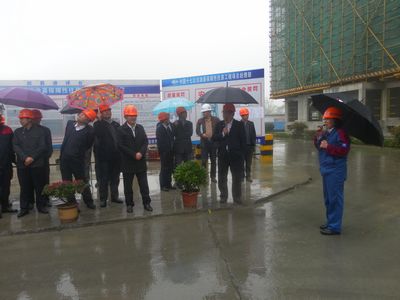 会前,与会人员冒雨一同到中冶置业(安徽)公司承建的当涂经济开发区公租房二期工程进行了现场观摩。
