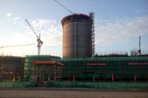 该项目工程范围包括卸储配煤装置的1-3#仓的土建工程、绕仓平台、上仓钢梯、仓上廊道及1-9#仓仓上廊道内楼地面混凝土、水、暖、避雷等相关工程等,于2014年5月25日破土动工, 7月5日开始钢筋绑扎、浇筑砼底板基础,9月5日滑膜启动,9月24日滑膜到顶,该仓为无粘结预应力储配仓,壁厚400mm、高62.9m、管经30m。