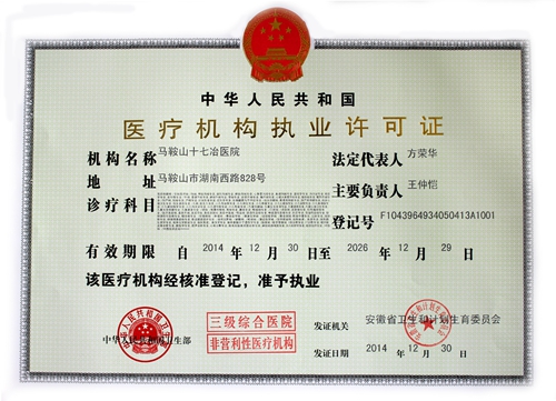 马鞍山十七冶医院创建于1965年,1995年被评为国家级二级甲等综合性医院,现已发展为开放床位750张,集医疗、预防、科研、教学、康复保健等功能完备医疗设施现代化的医院。马鞍山十七冶医院在马鞍山市委市政府、安徽省卫计委和马鞍山市卫生局的关心与支持下以及中国十七冶集团的领导下,按照马鞍山市十二五(2011—2015年)卫生区域规划提出创建一所三级综合医院的要求,以“一天也不耽误、一天也不懈怠”的工作状态,积极践行“24小时工作法”,抓住机遇,紧紧围绕安徽省三级综合医院建设标准,全院上下团结一心,强基础、抓质量,在医疗技术、服务水平、综合管理等方面实现了质的飞跃。经过几年的不懈努力,顺利达到三级综合性医院的标准。