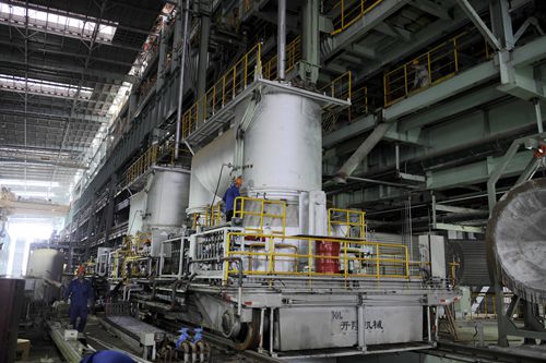 配套这么大的转炉,其钢水接受跨的行车自然也是一个“巨无霸”——全国最大的520吨铸造起重机。该行车长22.6米、宽22米、高9.35米,净重656.545吨,是宝钢湛江炼钢区钢水接收跨关键设备,是目前世界同类产品中起重量最大,轮压最低的冶金铸造起重机。其主要用途是在高温、多粉尘的恶劣环境下,完成1600多摄氏度钢水的吊运工作,其工作繁忙程度为起重机最高级别。该设备采用了“四梁六轨、低速轴连接大减速器结构形式”,集多种先进技术于一身,整体技术水平达到国际领先水平。项目部在行车吊装前充分准备,进行了多次现场检查,保证了行车安装准备措施落实到位,确保了首台行车一次成功就位。次台行车从吊装到投入使用仅用时45天,又一次创造了超大行车安装新纪录。26天后,第二台520t行车也顺利吊装成功。