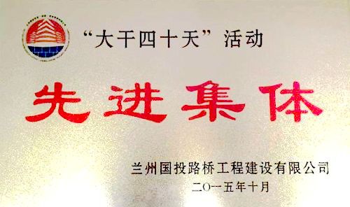 兰州国投路桥工程建设有限公司于8月19日提出项目建设“保安全、促工期、抓质量、抢进度,大干快干四十天”活动任务。项目部积极响应业主号召,精心组织、周密筹划,积极克服任务重、难度大、工期紧等诸多不利因素,将任务目标细化分解;强化施工现场安全生产的监督、检查,把好安全质量关;细化施工方案,倒排工期,确保整体工程施工有序推进,在业主多次安全、质量、进度跟踪检查中综合排名均位列前茅,受到了业主及监理方的一致好评,并在西线4个标段中获得第一名,被评为“先进集体”,获得业主的表彰和奖励。
