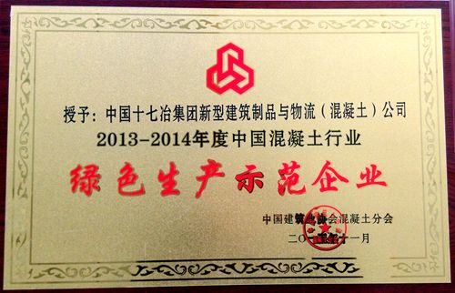 混凝土绿色生产示范企业的评价工作由中国建筑协会混凝土分会负责组织评价和发布,报中国建筑协会批准。十七冶新型建筑制品与物流(混凝土)公司配备了相应的专业技术管理人员及质量检测设备,建立和完善绿色生产管理制度,按照“三标一体化”管理体系程序,实现节能、节材、节水、节地和环境保护的“四节一环保”生产目标。与此同时,加大科技创新力度,成立了以中青年为主要力量的技术攻关队伍,进行绿色环保混凝土新产品的开发。持之有效的管理工作得到有关方面充分肯定,为混凝土行业的发展作出了积极贡献。