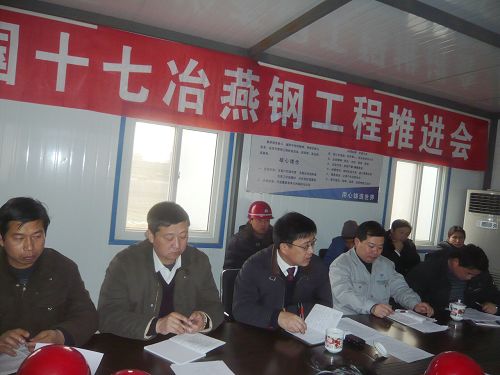 3月8日下午,机电公司燕钢项目部召开工程推进会,机电公司经理唐克斌与有关负责人及项目部领导班子和全体员工、各施工队主要负责人及协作单位负责人参加了会议。 项目经理施光涛就燕钢300m2烧结工程的施工进度和存在的问题进行了汇报,各参战队伍在会上纷纷表态确保节点的顺利完成,为十七冶进驻燕钢集团打好第一场攻坚战。会上,机电公司领导就燕钢工地质量安全检查的结果提出了要求。 唐克斌经理在会上讲了话。他首先肯定了燕钢项目部的安全管理、质量管理、经营管理等方面的成绩,在燕钢工地做到了参战队伍中的第一,为十七冶继续争取燕钢的后续工程打下了基础。他要求项目部和参战单位相互监督,严格按节点进行考核,确保4月25日300m2烧结工程全面单体试车。他希望项目部在燕钢做出品牌、做出特色、干出十七冶的形象。