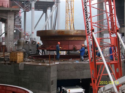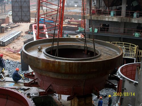 原料立磨为水泥熟料系统的心脏,而磨盘和揺臂轴承则是原料立磨安装的重中之重,其磨盘加附件单重达85吨,而4个揺臂轴承座单重也达到34吨,是吊装的难点部位,施工难度大。该项目部克服阴雨绵绵等不利因素,抢抓工期,精心组织,利用160吨履带吊冒雨吊装,顺利完成这一重要节点,确保原料立磨按期吊装。