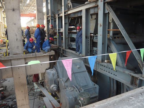 随着试车指挥长的一声“启动”令下,300㎡烧结机柔传1#、2#电机按先后顺序单独运转,方向正确无误,各项技术参数均符合设计要求。经短时间参数整定后,两台电机同时启动,头轮开始平稳运转,无噪声、无任何卡涩现象,赢得在场参与试车的甲方和设备厂家人员一致好评,赞扬“十七冶设备安装不但精度高,而且无论从安装进度上还是试车节点计划上来讲总能提前完成,开创了燕钢新区建设的先例”。