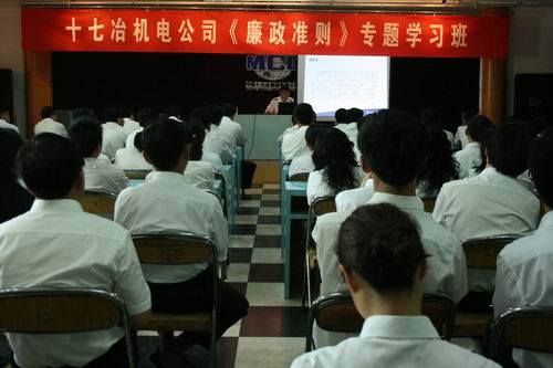 学习班上,机电公司党委书记周美初做了学习动员。十七冶集团公司组织文化部部长韩伟群做了专题授课。他要求大家要以贯彻落实《廉政准则》为契机,从自身做起,从党性修养入手,从作风建设入手,筑牢拒腐防变的思想道德防线。进一步加强党风廉政建设,强化民主管理,率先做到以身作则、廉洁自律,坚决惩治和有效预防腐败。