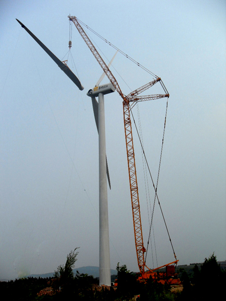 山东蓬莱大柳行风电项目由华润电力(风能)开发有限公司投资兴建,工程包括施工道路、25个风机基础以及25台维斯塔斯V90—2MW风力发电机组的安装。工程自5月8日开工以来,项目部全体员工顽强拼搏,工程进度快速推进,目前已完成18个风机基础,修筑上山道路25公里。