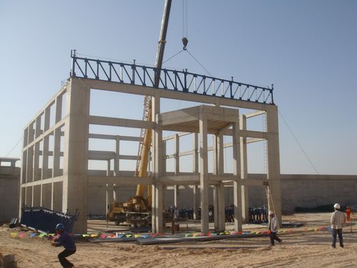 8月8日早晨,随着一声哨响,多功能厅钢屋架徐徐吊起,阿尔及利亚监狱工程最后一个单体结构顺利升顶,标志着该项目工程结构全面完成。 阿尔及利亚监狱工程于2009年元月正式动工,项目部全体员工始终克服了高温沙尘、资源匮乏、合同滞后等不利因素,仅18个月就在一片荒漠上建起了约60个子项的大规模建筑群。同时项目部强化质量管理,砼结构检测合格率达到100%,其中18#、21#、28#、1.6KM巡查墙等结构被业主、监理、设计院称为精品。目前,砌筑、抹灰、门窗施工正有序进行,员工们正冒着室外50℃高温和热风沙尘全力奋战,争取早日实现项目管理目标。