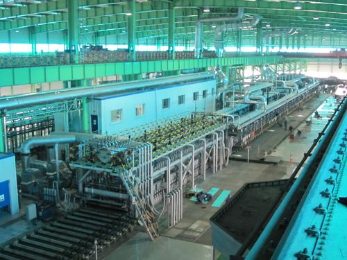 酒钢不锈钢中厚板退火炉段主要由辊底式热处理炉、连续辊道式淬火机、冷矫直机、滚切式取样剪等设备组成。退火炉本体包括188根单独变频传动辊道,221个脉冲燃烧自身预热式烧嘴。炉体外围包括煤气、烟气、空气、氮气和冷却水五套介质管道。项目开工以来,参战人员团结协作,抢工期、加班干,克服劳动力资源短缺、材料资源匮乏等困难,提前完成烘炉试车。