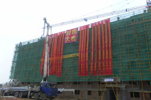 该两栋楼为6层砖混结构,建筑面积6012㎡,工程自2月中旬正式开工以来,项目部全体员工充分发扬“敬业、忠诚、团结、进取”的企业精神,高标准、高起点地抓施工安全、质量和工程进度,仅用120天顺利封顶。
