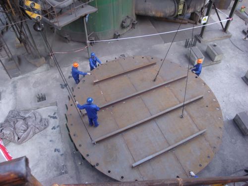 6月21日,甘肃分公司承建的榆钢公司热风炉工程顺利完成第一带炉底板吊装。 榆钢公司新建热风炉工程为两座顶燃式热风炉,属榆钢450高炉技改项目。其要求工期紧,施工穿插于生产过程中,施工难度大。甘肃分公司榆钢项目部经过前期的精心准备,以最快的速度组织人员、材料、工机具进场,以标准化管理,确保优质、高效完成施工任务。