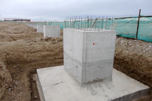 施工中,新疆分公司项目部精心组织,科学管理,克服昼夜温差大、施工资源紧缺、可用工期短以及风沙大等不利条件,争抢工期,仅用了17天时间就完成54个柱基础的浇筑,确保了施工节点,履行了对业主的承诺。另外项目部还完成了工程一期和二期围墙基础开挖