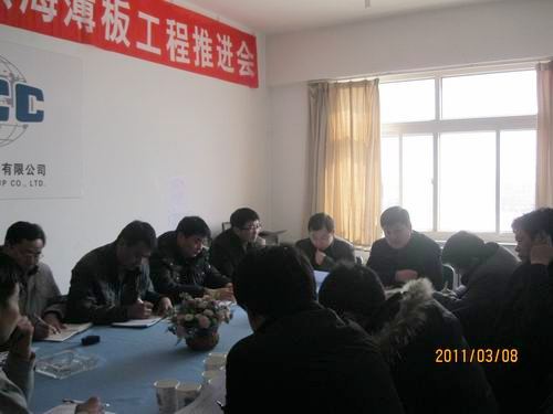 3月8日下午,山东烟台东海薄板项目部召开工程推进会。冶金工程技术公司副经理王德林及项目部管理人员和各施工单位负责人参加了会议。 项目经理牛志刚就工作进展情况作了汇报。项目部相关部门负责人分析了项目部经营状况。冶金工程技术公司机、电、管工程处及协作单位负责人分别作了表态性发言。王德林副经理要求,项目部要以签订考核责任书、开展劳动竞赛等方式调动员工积极性,确保工程按期完成。