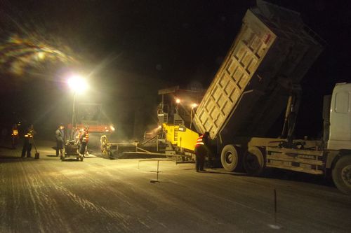 为克服雨季施工的种种困难,项目部打破常规作业方式,积极开展24小时昼夜施工计划,并制定“雨来我休息、雨停我工作”的施工方案,项目安全、质量、施工管理人员跟班在作业现场,坚持“只要机械响,领导就在场”的原则,保质保量确保今年“五一”通车目标实现。