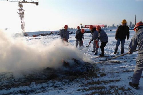 11月23日下午,十七冶城建工程技术公司沈阳南站项目经理部在施工现场举行了一场冬期火灾应急救援预案实战演练,并邀请监理代表到场检查和指导冬期施工的消防工作。 为开展好这次安全应急预案演练活动,项目部制定了详细的活动方案,专门召开了全体员工动员会,将演练目的、内容、程序等都作了细致的讲解。通过火情报警和义务消防队员灭火等消防安全演练,达到了提高现场应急救援小组自救能力、增强应急反应能力的预期目的。