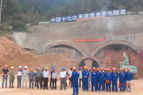 4月25日上午10时58分,十七冶路桥工程技术公司施工的广西百靖高速5标隧道施工现场彩旗招展,随着挖掘机的轰鸣,百靖高速陇央外屯隧道左线主洞顺利实现贯通。 百色至靖西高速公路第五标段陇央外屯隧道全长412m,是全线最长的双连拱隧道。该隧道围岩整体软弱、节理裂隙发育、自稳能力极差,且伴有裂隙水,施工难度大,安全隐患多。主洞开挖后,严格执行新奥法隧道施工技术要求,采取三台阶四步开挖法进行掘进施工,每循环进尺两榀拱架间距。 项目部全体管理人员和现场作业人员,克服了工期紧、任务重和作业环境复杂等诸多困难,精心组织,科学施工,用了不到8个月的时间实现了左线主洞胜利安全贯通,且施工的质量、进度和安全得到了业主、监理的高度评价。