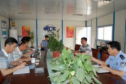 项目经理朱发生就安置房工程自去年开工以来的工程施工、治安环境等方面工作做了详细汇报。调研组通过询问、查看现场等方式,对项目部所开展的工作及银塘镇派出所与项目部在工作上互相配合、相互支持表示十分满意。随后调研组领导就施工现场消防安全、综合治理等方面工作提出了相关要求和建议,并表示将在施工治安环境等方面给予项目部支持和保证,确保此项马鞍山市重点工程顺利进行。