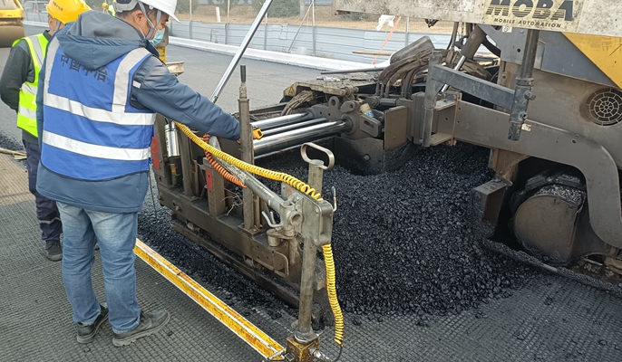 2月28日,伴随着轰隆的汽车马达声,中国十七冶集团房屋分公司马鞍山红旗南路道路提升改建项目三台沥青摊铺机同时开展摊铺作业,现场施工热火朝天、井然有序,项目正式开展南段道路下面层沥青摊铺作业。此次沥青摊铺的完成,标志着南段道路(超山-明珠路)将具备通车条件。