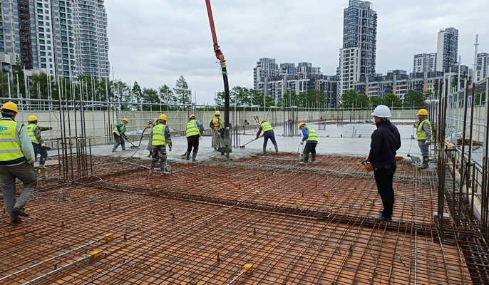 本项目位于上海市宝山区友谊街道,宝钢股份基地东南侧,一号门与二号门之间,原为宝钢股份设备仓库。地块北临马路河,东西两侧分别为牡丹江路和同济路,南侧为富锦路。场地分期开发,本期项目用地面积约为97501平方米,总建筑面积约为101822平方米。复工以来,390余名工人奋战在施工现场,项目已完成2#、3#楼二层顶板混凝土浇筑,17#楼柱子基础浇筑,15#楼出层排架搭设,3#楼三层排架和模板施工。项目部将继续发扬“一天也不耽误,一天也不懈怠”的企业精神和“24小时工作法”,促大干、保安全,心无旁骛、全力以赴打造精品工程。