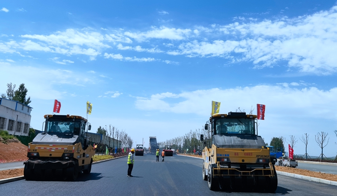 本次摊铺试验段长300米,左幅宽16米,设计厚度5厘米,现场摊铺采用一台摊铺机全断面摊铺,三台双钢轮压路机和二台胶轮压路机组合碾压。为保证此次沥青摊铺顺利完成,项目部高度重视,努力克服工期紧、任务重等不利因素影响,认真筹划,真抓实干,制定科学的施工计划,不断提高施工效率。施工过程中,严格控制沥青混合料的拌合、运输、摊铺、碾压、检测等各个环节,确保各项指标满足规范要求,严格保障施工质量。在摊铺施工中,项目部始终将安全文明施工放在首位,技术人员全程跟进,进行现场监督指导,强化过程控制,明确分工,责任到人,努力营造安全的施工环境。此次沥青上面层试验段摊铺的顺利完成,为南阳S234项目(卧龙段)沥青上面层全面施工奠定了坚实的基础,为6·30通车目标的实现提供了有力保障。
