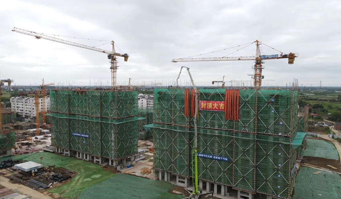 当涂姑孰安置房项目建筑总面积为136082.69平方米,最大单体地下汽车库建筑面积24360.9平方米,包括23栋单体住宅(10栋地上11层,12栋地上8层,1栋地上7层),地下停车库(地下1层),室外及其他配套工程(包括室外景观工程、室外绿化工程、室外亮化工程、室外道路工程、室外综合管网工程)。本次封顶的1#楼为十一层单体住宅,10#楼为八层单体住宅,屋面形式为斜屋面。