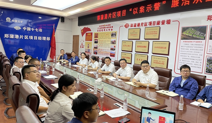 为深入贯彻落实中央八项规定精神,持之以恒加强作风建设,7月14日,公司纪检部副部长单冬、中冶置业(安徽)公司纪委书记赵慧慧一行到中国十七冶集团承建的郑蒲港片区项目部开展“以案示警”廉洁从业学习教育。片区项目经理部领导班子成员、党员代表等参加学习。