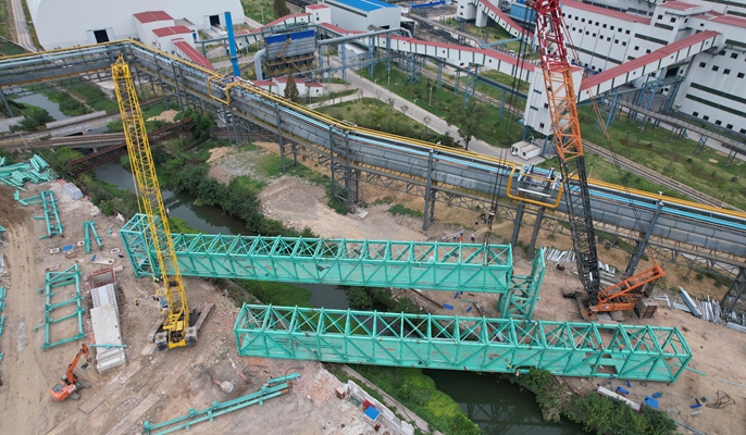 8月24日,由中国十七冶集团冶金工程技术分公司承建的马钢新特钢项目首个跨河通廊顺利吊装完成。
